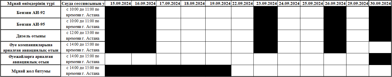 2025 жылғы қыркүйек айына Жеткізу жоспары бойынша мұнай өнімдері саудасының кестесі